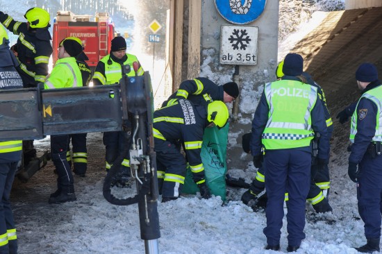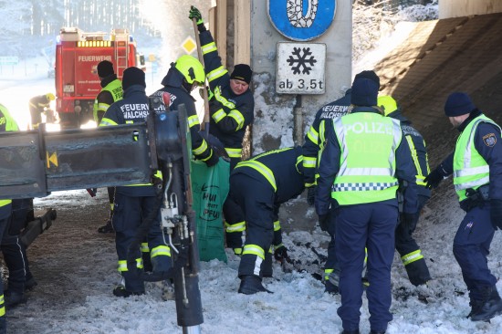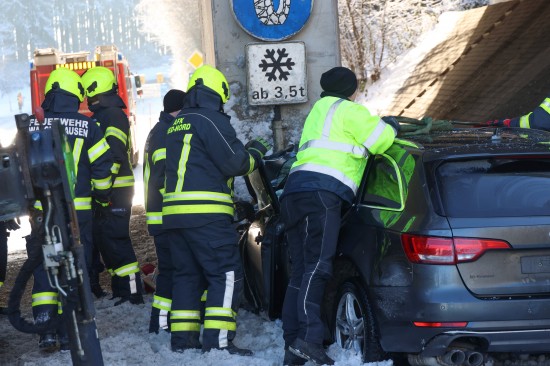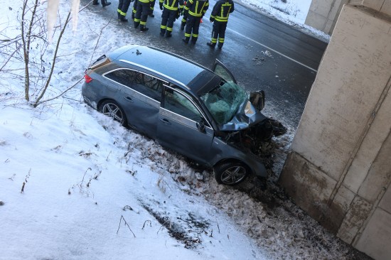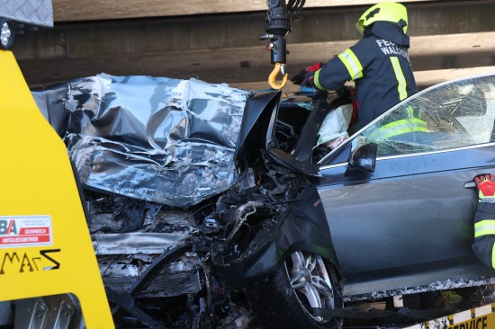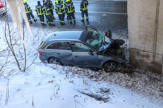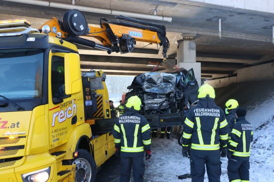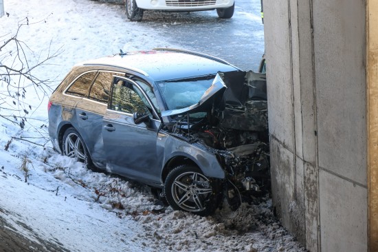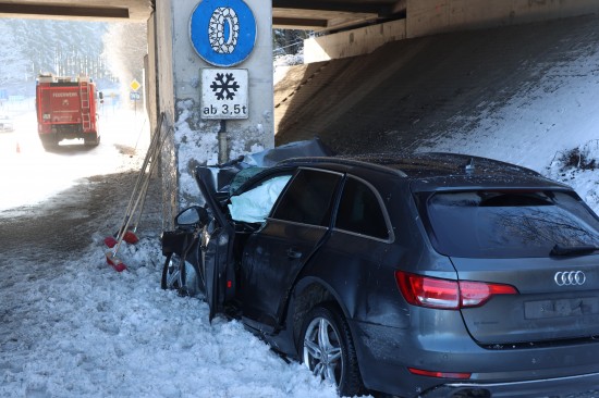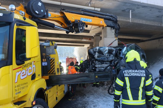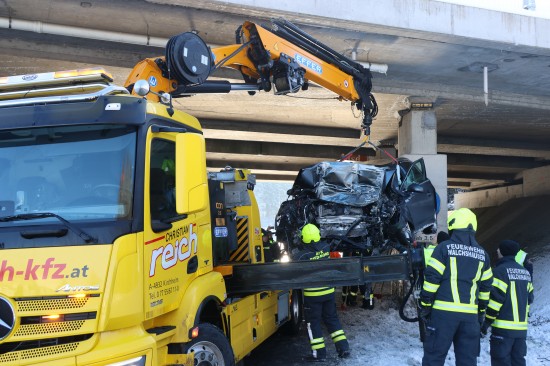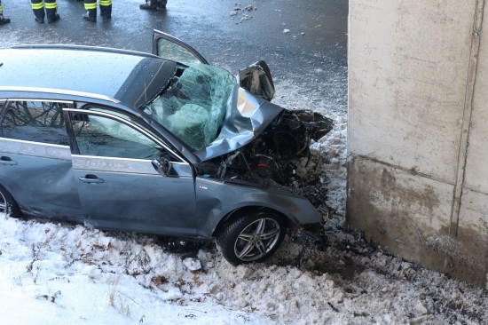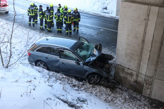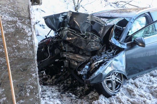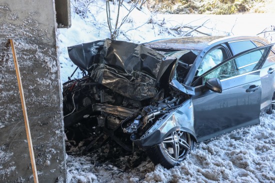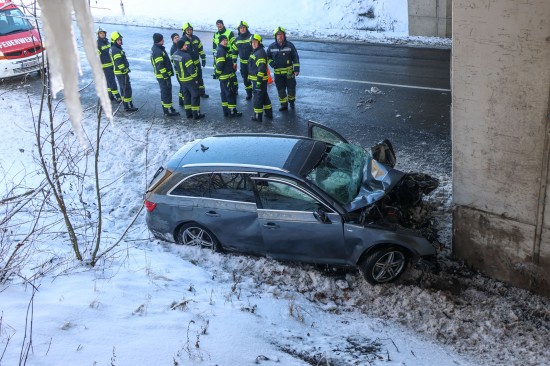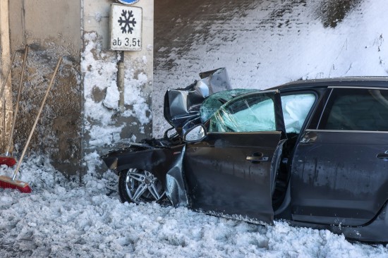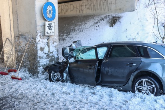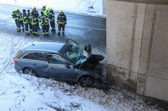 Schwerer Verkehrsunfall: Auto in Tumeltsham frontal gegen Brückenpfeiler gekracht