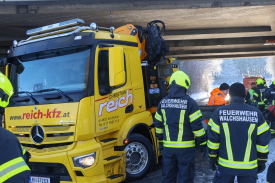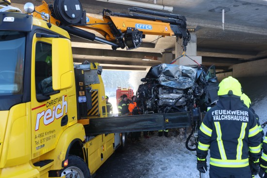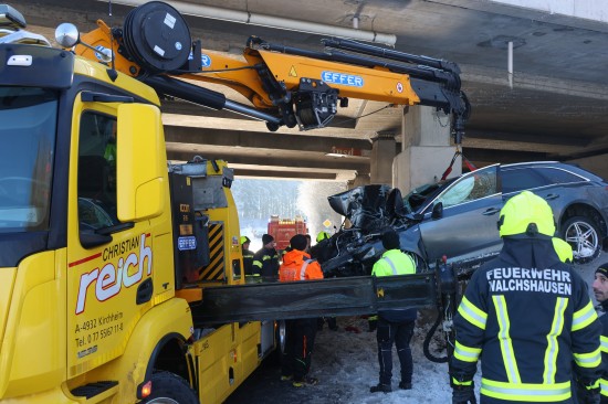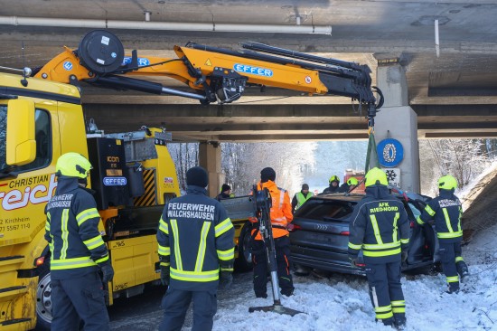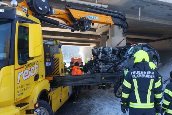 Ein Auto ist dort auf der B141a Rieder Straße, Abzweigung Walchshausen, auf Höhe der Unterführung unter der A8 Innkreisautobahn frontal gegen einen Pfeiler des Brückenbauwerks gekracht. Die Einsatzkräfte zweier Feuerwehren wurden zur Personenrettung nach einem Verkehrsunfall alarmiert. Beim Eintreffen der ersten Feuerwehrkräfte an der Unfallstelle wurde der Lenker gerade von den Rettungskräften aus dem Unfallwrack befreit. Die Feuerwehr sicherte in weiterer Folge die Unfallstelle ab und unterstützte im Anschluss an die Patientenversorgung und Unfallaufnahme den verständigten Abschleppdienst bei der Bergung des Unfallfahrzeuges.