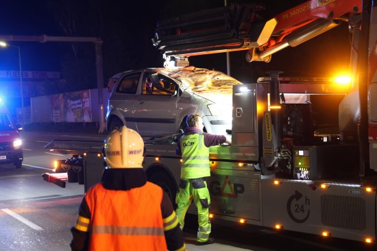 Wels. Zwei Schwerverletzte hat am späten Montagabend ein schwerer Verkehrsunfall auf der B1 Wiener Straße in Wels-Lichtenegg gefordert. Ein Auto hat sich dabei überschlagen.