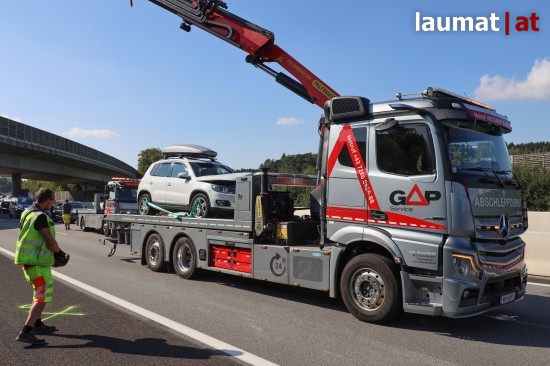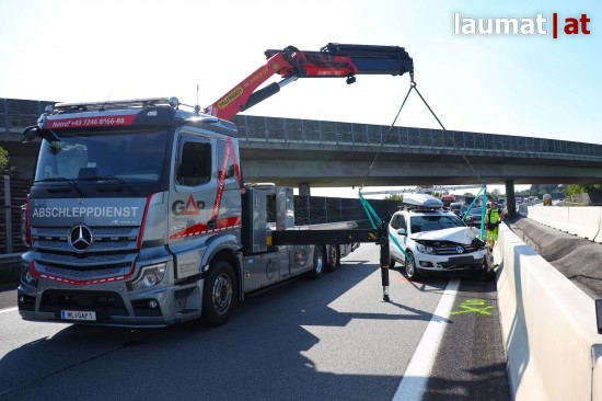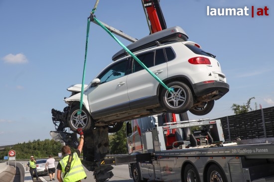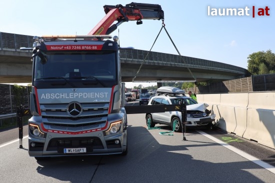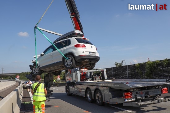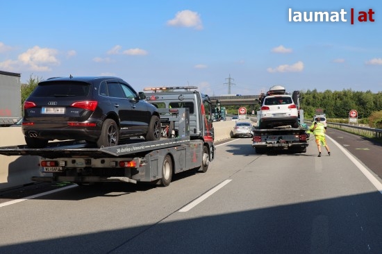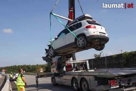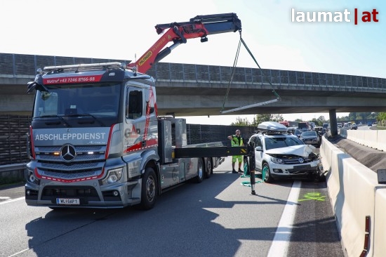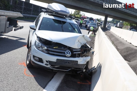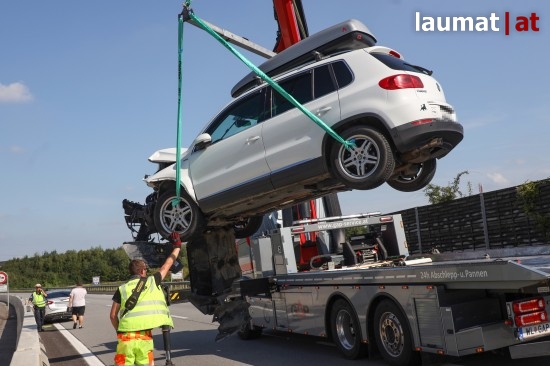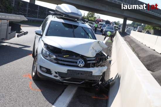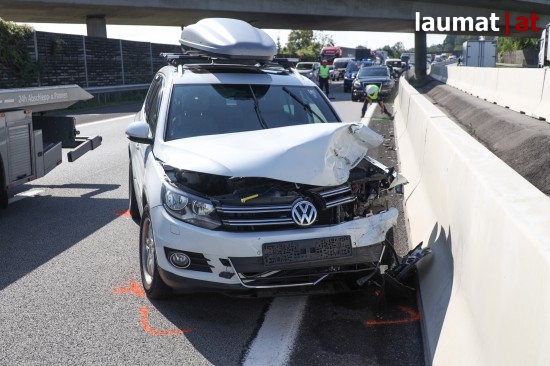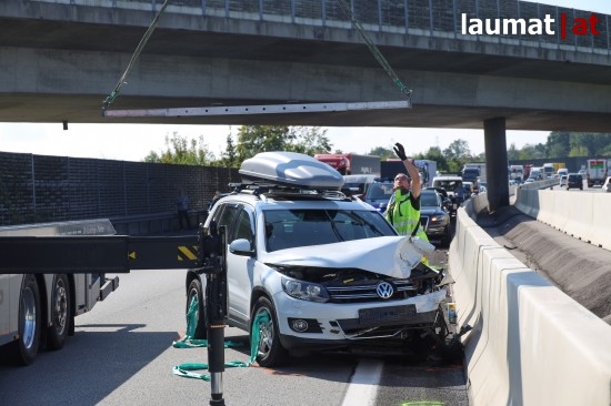 Schwerer Verkehrsunfall mit drei beteiligten Autos auf Welser Autobahn bei Wels-Oberthan
