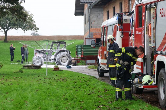 Sechs Feuerwehren bei Brand eines Traktors auf einem Bauernhof in Laakirchen im Einsatz