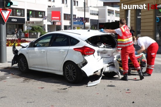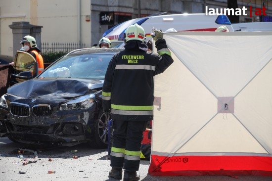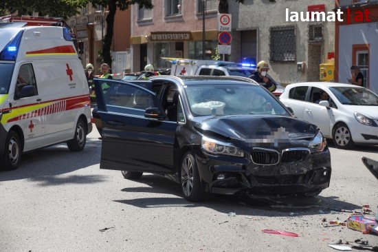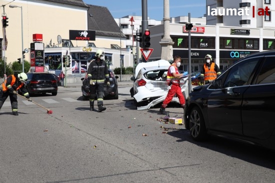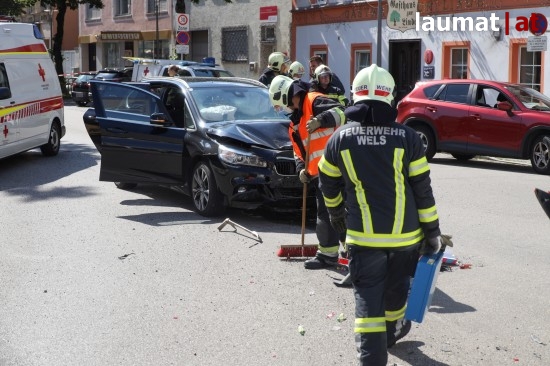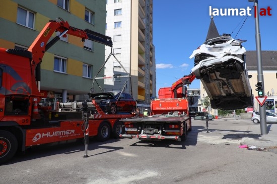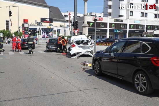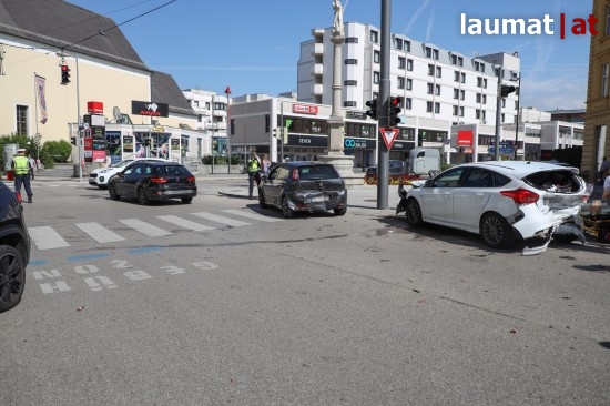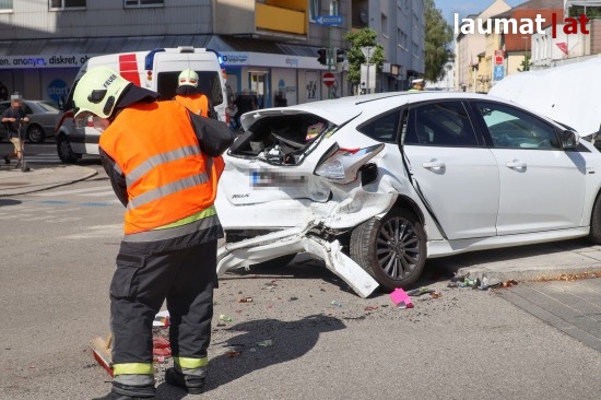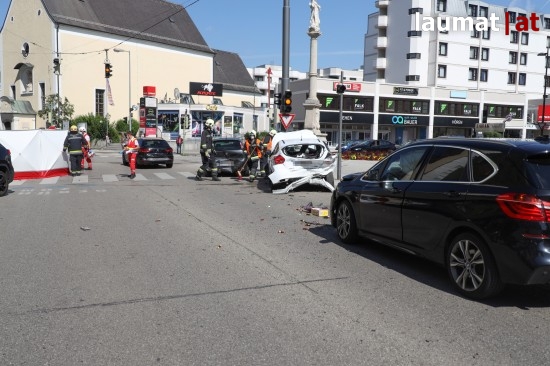 Sechs Verletzte bei schwerem Crash mit vier beteiligten Autos in Wels-Innenstadt