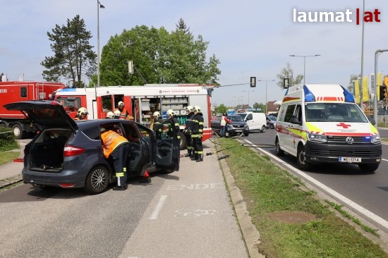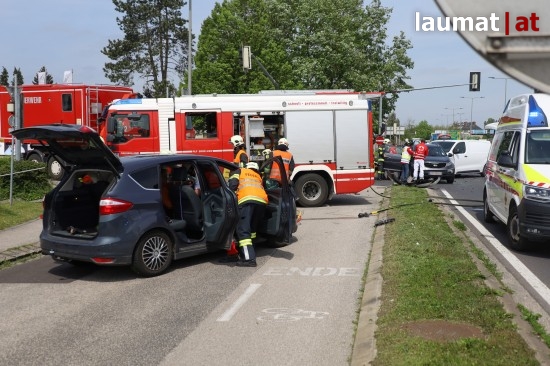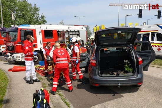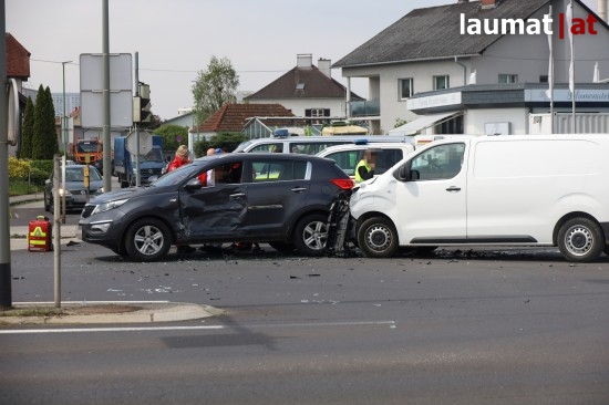 Sechs Verletzte hat Montagvormittag ein schwerer Kreuzungsunfall zwischen drei Fahrzeugen - einem Kleintransporter und zwei PKW - auf der B138 Pyhrnpass Straße in Wels-Pernau gefordert.