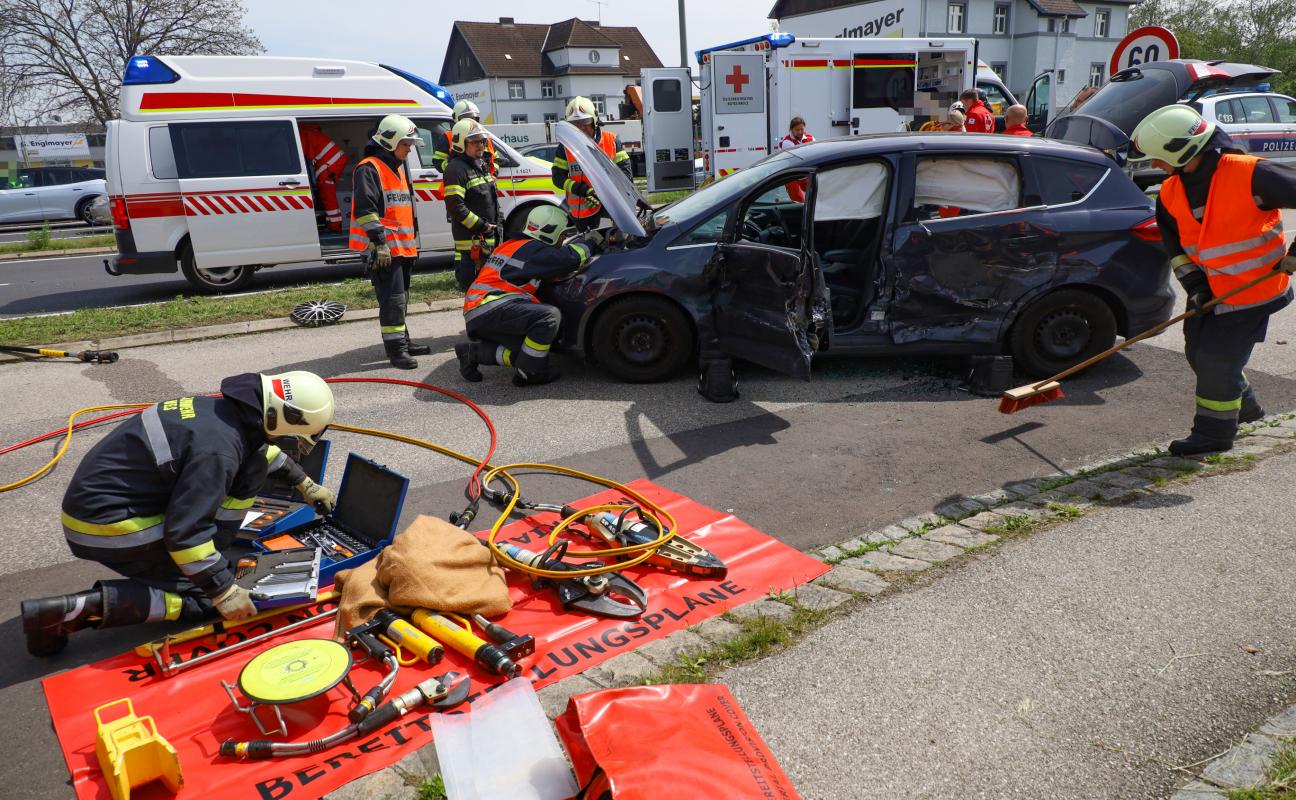 Sechs Verletzte bei schwerem Kreuzungscrash auf Pyhrnpass Straße in Wels-Pernau