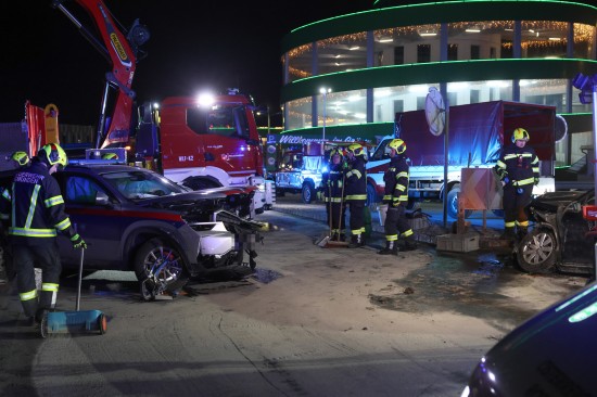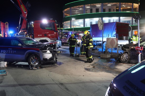 Aus noch unbekannten Gründen kam es am späten Mittwochnachmittag auf der B145 Salzkammergutstraße beim Knoten Gmunden Zentrum in Gmunden zu einem schweren Verkehrsunfall, bei dem ein Auto und ein Streifenwagen der Polizei frontal kollidiert sind. Ein weiterer PKW war offensichtlich noch leicht in den Unfall verwickelt. Die Einsatzkräfte zweier Feuerwehren wurden zur Personenrettung nach einem Verkehrsunfall alarmiert, ebenso ein größeres Aufgebot des Rettungsdienstes samt zweier Notarztteams. Die Verletzten waren zum Glück nicht unmittelbar in den Unfallfahrzeugen eingeklemmt. Die Feuerwehr unterstützte den Rettungsdienst bei der Rettung der Verletzten aus den Unfallwracks. Zwei Personen wurden bei dem Crash schwer, eine Person mittelschwer und drei weitere Personen leicht verletzt. Sie wurden anschließend vor Ort von Sanitäterinnen, Sanitätern und den Teams der Notarzteinsatzfahrzeuge erstversorgt und in weiterer Folge ins Klinikum transportiert. Die Kräfte der Feuerwehr unterstützten nach abgeschlossener Unfallaufnahme das verständigte Abschleppunternehmen, banden ausgelaufene Betriebsmittel und führten umfangreiche Aufräumarbeiten durch.