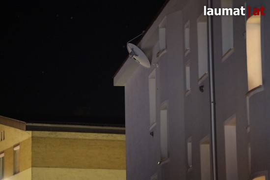 Eine Parabolantenne für den Satellitenrundfunkempfang - umgangssprachlich Satellitenschüssel genannt - drohte am späten Freitagabend in Wels-Neustadt von einem Mehrparteienwohnhaus abzustürzen.
