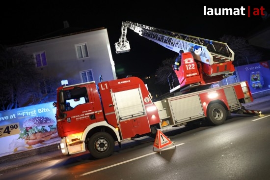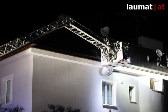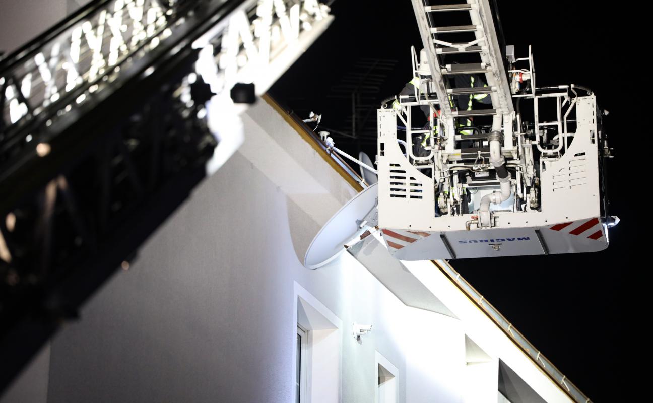 Ein Hausbewohner meldete der Feuerwehr, dass eine Satellitenschüssel vom Dachbereich des Mehrparteienwohnhauses abzustürzen drohte. Die Feuerwehr rückte mit der Drehleiter an und entfernte die lose hängende Parabolantenne, die sich vermutlich bei den stärkeren Windböen im Laufe des Freitags gelöst hatte.