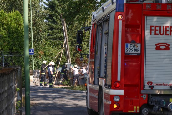 Sicherungsarbeiten: Umgestürzter Telefonmast führte zu Einsatz der Feuerwehr in Wels-Puchberg