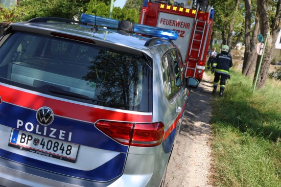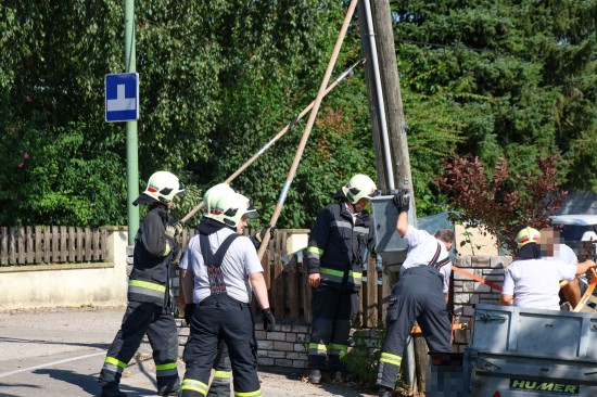 Einsatzkräfte der Feuerwehr und der Polizei standen Montagvormittag in Wels-Puchberg im Einsatz, nachdem ein Bagger einen Telefonmast zu Fall gebracht hat.