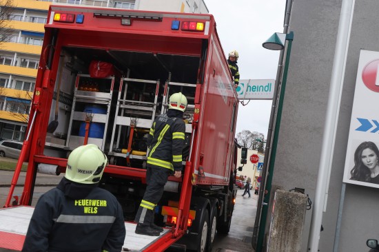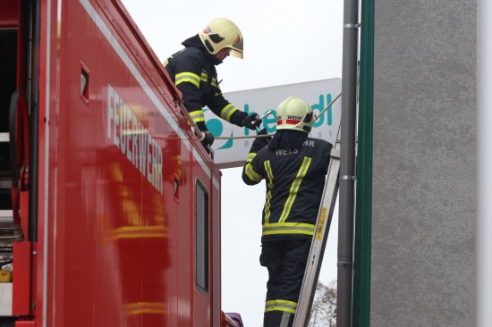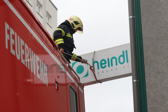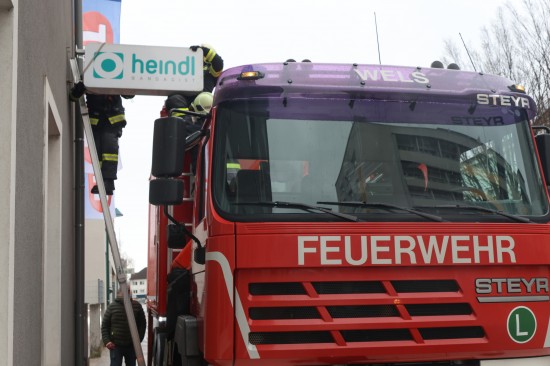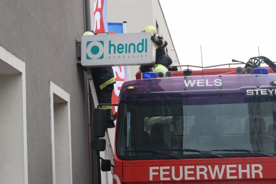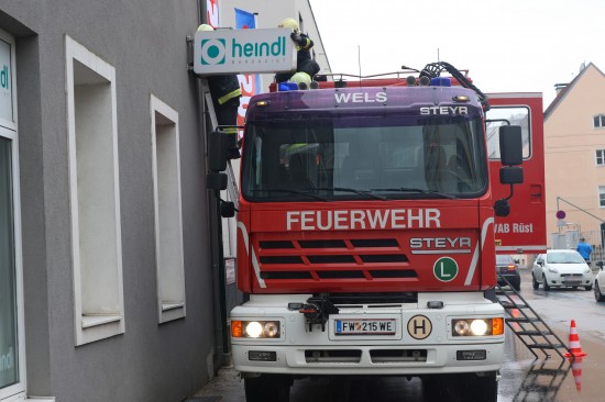 Sicherungseinsatz: LKW touchierte Leuchtreklame eines Geschäfts in Wels-Innenstadt