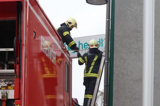 Wels. Ein LKW hat Dienstagnachmittag in Wels-Innenstadt die Leuchtreklame eines Geschäfts touchiert und so beschädigt, dass die Feuerwehr diese abmontieren musste.