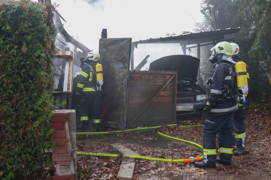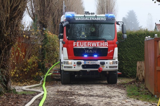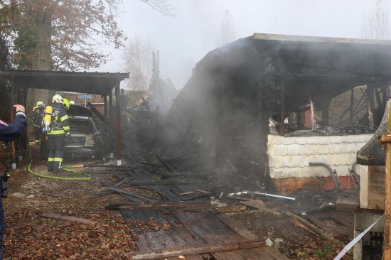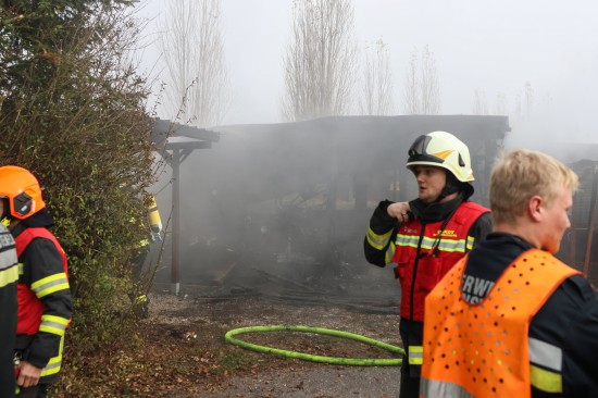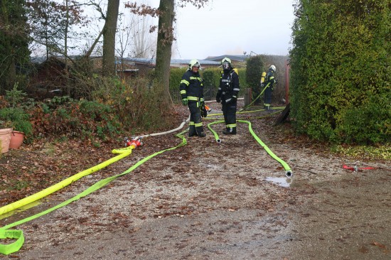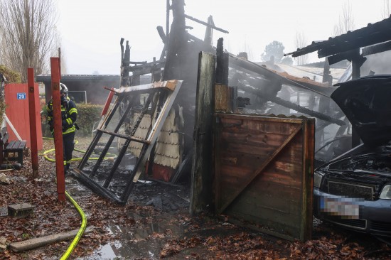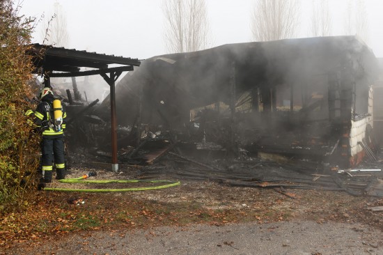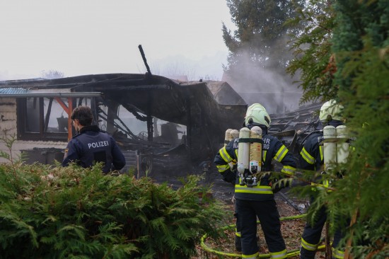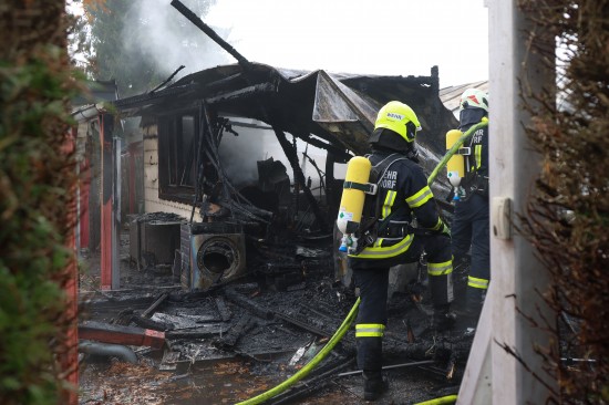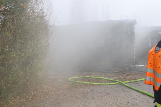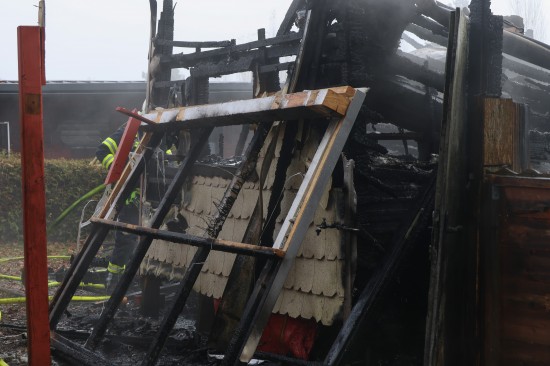 Sieben Feuerwehren beim Vollbrand eines Kleingebäudes in Pettenbach im Einsatz