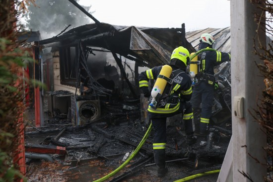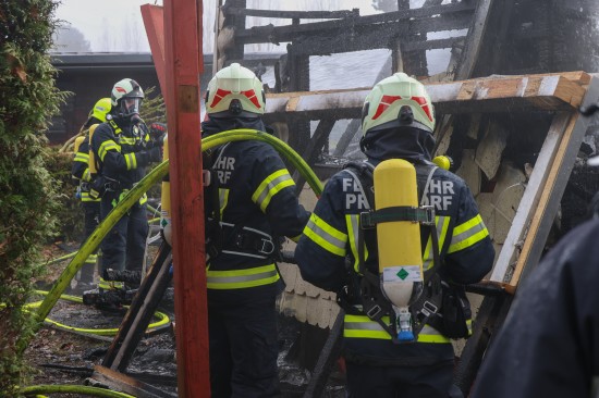 Pettenbach. Sieben Feuerwehren standen am Sonntagvormittag bei einem Brand eines Kleingebäudes in Pettenbach (Bezirk Kirchdorf an der Krems) im Einsatz.