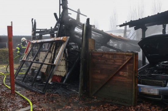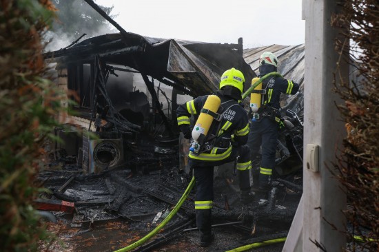 Sieben Feuerwehren standen am Sonntagvormittag bei einem Brand eines Kleingebäudes in Pettenbach (Bezirk Kirchdorf an der Krems) im Einsatz.