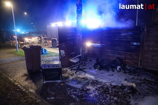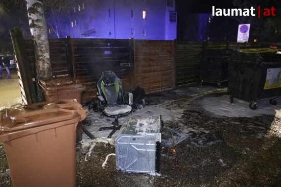 Am späteren Silvesterabend brannte in einer Müllinsel einer Siedlung in Wels-Vogelweide erneut eine Großraummülltonne. Die Feuerwehr konnte auch den Brand rasch löschen, nachdem zuvor bereits erste Löschversuche mittels Feuerlöschern unternommen wurden.