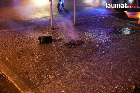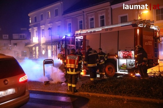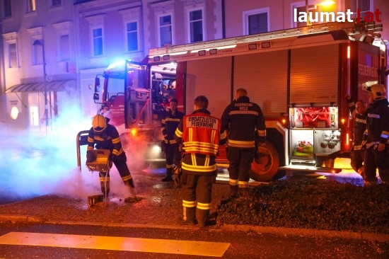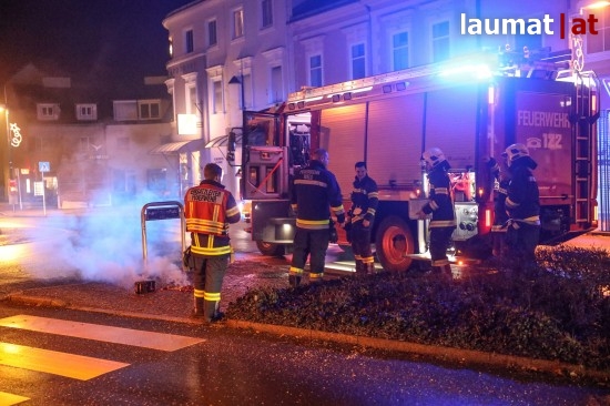 Wenig später brannten am Karl-Görlich-Platz im Welser Stadtteil Neustadt die Reste einer Feuerwerksbatterie. Die glosenden und stark rauchenden Reste konnten rasch abgelöscht werden.