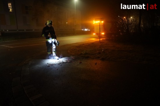 In Wels-Lichtenegg stand am Abend eine Müllinsel in Flammen. Diese Müllinsel war für die Einsatzkräfte kein unbekannter Einsatzort - sie brannte schon öfters. Besonders dreist war der Umstand, dass den Einsatzkräften dann auf der Zufahrtsstrecke noch eine Großraummülltonne in den Weg gelegt wurde, die zuerst weggräumt werden musste, um den Brandort zu erreichen.
