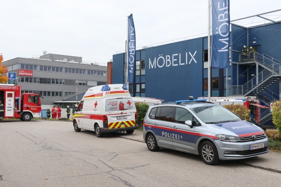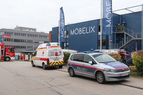Ein Brand in der Küche der Kantine einer Möbelhauszentrale in Wels-Neustadt hat am Freitagnachmittag für einen längeren Einsatz der Feuerwehr gesorgt. Rettung und Polizei waren ebenso vor Ort.