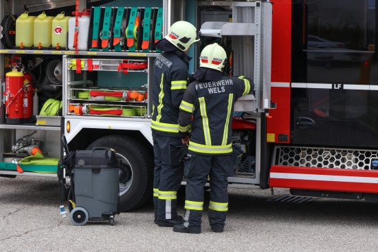 Die Einsatzkräfte der Feuerwehr wurden zu einer Brandmeldeauslösung in der Kantinenküche im Gebäude einer Möbelhauszentrale im Welser Stadtteil Neustadt alarmiert. Vor Ort konnte dann festgestellt werden, dass in der Küche ein Abfalleimer brannte. Personen befanden sich zum Glück keine mehr in der Kantine, das Personal befand sich bereits in Sicherheit. Durch den Brand löste auch die Sprinkleranlage aus, das Feuer konnte so bereits gelöscht werden. Die Folge war dann jedoch ein größerer Wasserschaden im Küchenbereich, der von den Kräften der Feuerwehr in weiterer Folge behoben werden musste. Mit mehreren Wasserschiebern und Wassersaugern wurde das Wasser aus dem Gebäude entfernt. Verletzt wurde niemand.
