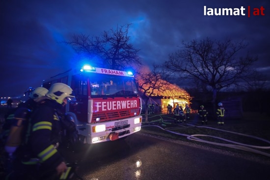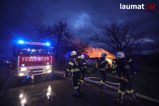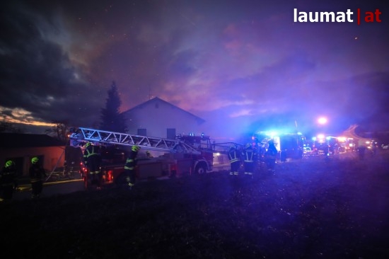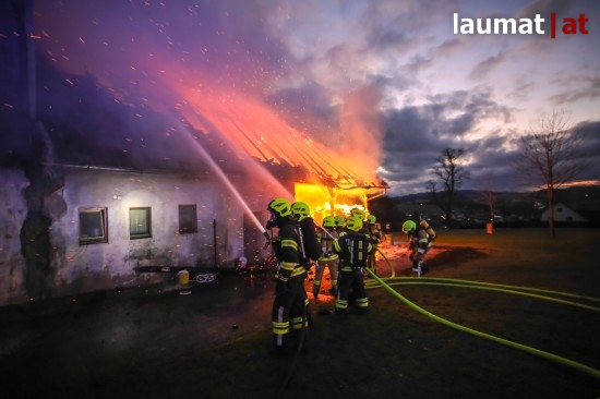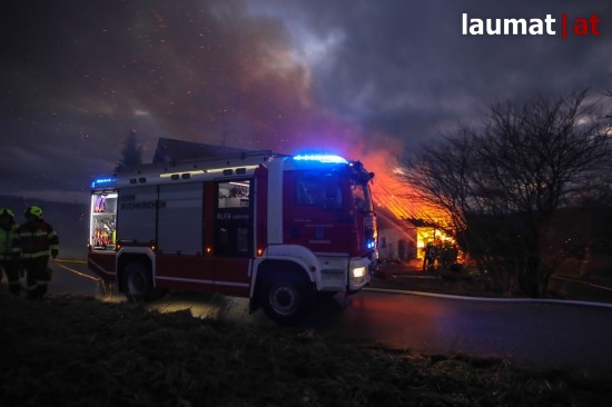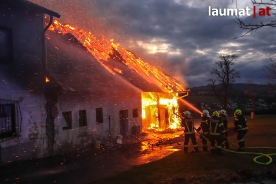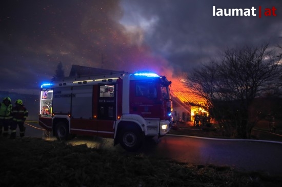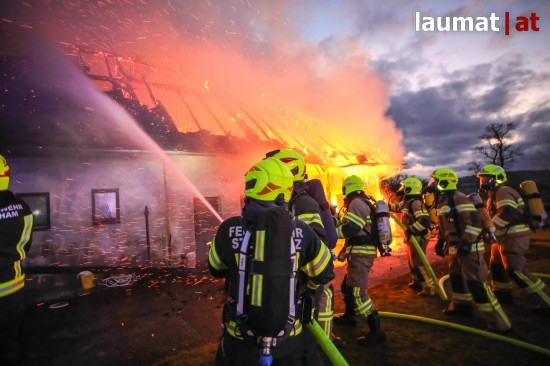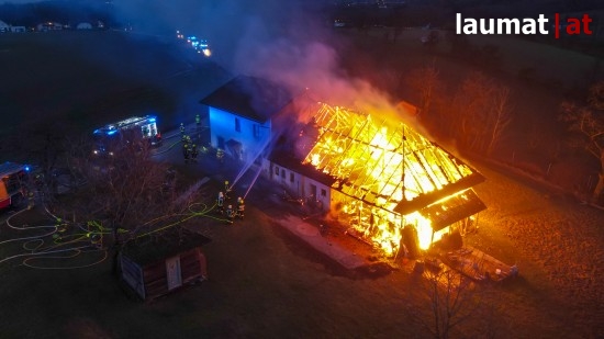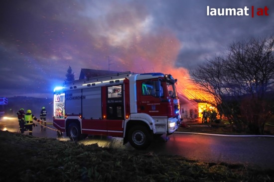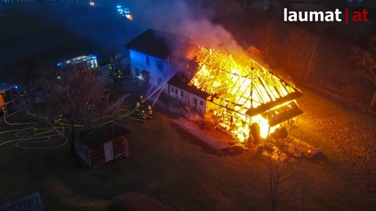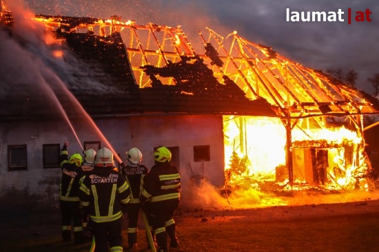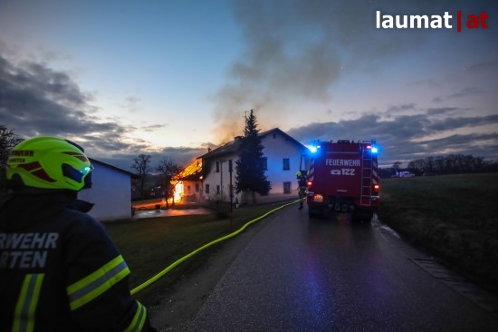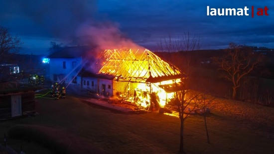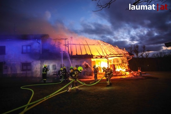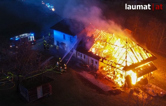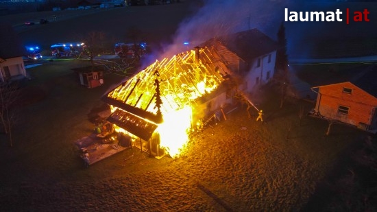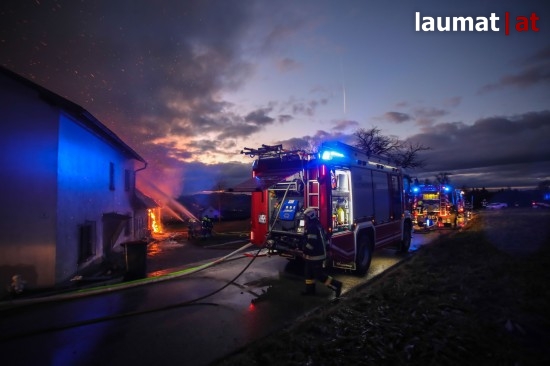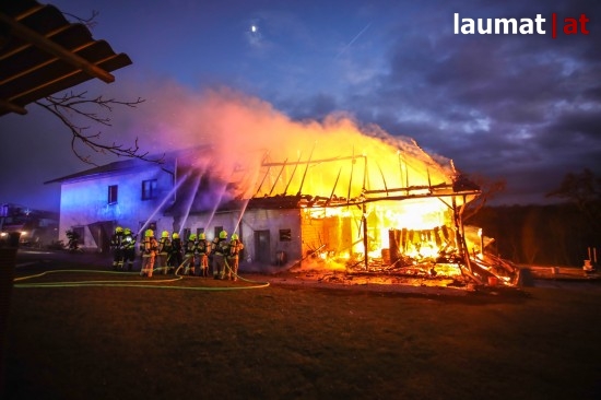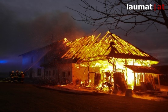 Die Einsatzkräfte der Feuerwehr wurden am Nachmittag zu einem Brandeinsatz gerufen. Beim Eintreffen der ersten Kräfte stand der Stadel, der an ein Wohngebäude angebaut ist, bereits in Vollbrand. Die Einsatzkräfte riefen Alarmstufe 2 aus, Kräfte von elf umliegenden Feuerwehren waren daraufhin am Einsatzort um die Flammen unter Kontrolle zu bringen.