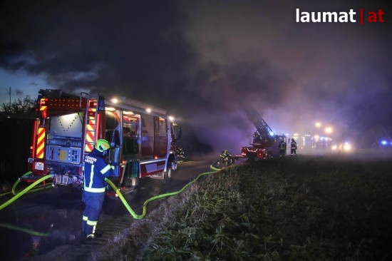 Elf Feuerwehren standen Mittwochnachmittag bei einem Brand eines Stadels, der an ein Wohnhaus eines landwirtschaftlichen Gebäudes in Scharten (Bezirk Eferding) angebaut ist, im Einsatz.