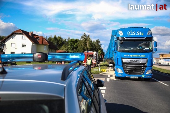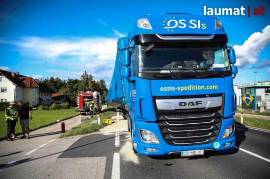 Straßensperre bei Marchtrenk: Sattelauflieger durch umgestürzte Ladung schwer beschädigt
