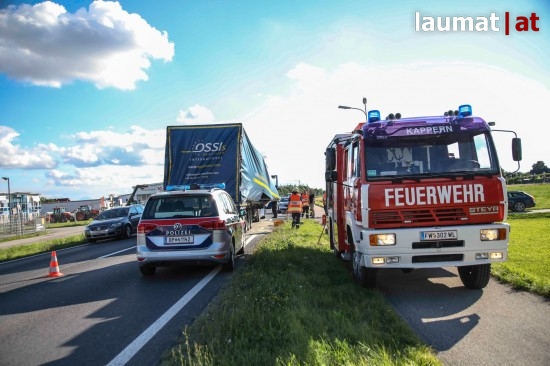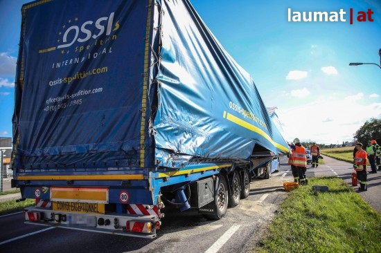 Die Ladung auf einem LKW-Auflieger dürfte umgefallen oder verrutscht sein, sodass der Sattelauflieger schwer beschädigt wurde und ein Teil der Ladung aus dem Raumprofil ragte. Der LKW blockierte im dichten Abendverkehr die B1 Wiener Straße zwischen Marchtrenk und Hörsching. Nach ersten Absicherungsmaßnahmen, bei denen auch die Feuerwehr im Einsatz stand, wurde der LKW mit dem beschädigten Auflieger unter Polizeibegleitung nach Wels eskortiert.
