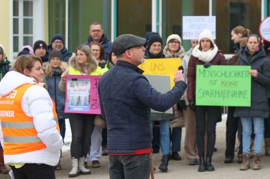 Im Mittelpunkt der Forderungen steht ein Inflationausgleich, sodass zumindest die Teuerung abgedeckt ist. Das aktuelle Angebot mit 3,3 Prozent ab 01. Juli 2027 würde laut Gewerkschaft einen Reallohnverlust bedeuten. Eine wesentliche Forderung ist auch die Arbeitszeitreduktion auf 35 Stunden pro Woche - gestaffelt bis 2030, nicht aufeinmal - für die es bisher kein Angebot der Geschäftsführung gegeben habe. Besonders hervorgehoben wurde auch die Forderung einer Verbesserung der Arbeitsbedingungen, um Stammpersonal zu halten. Wenn Personal fehlt, würden Betten immer wieder gesperrt, Operationen verschoben und weniger Zeit für die Einzelbetreuung überbleiben, heißt es.
