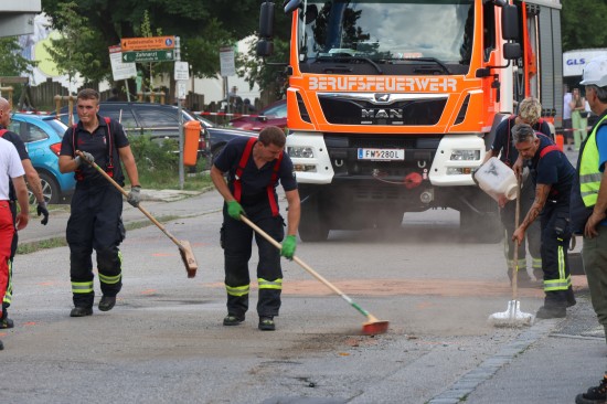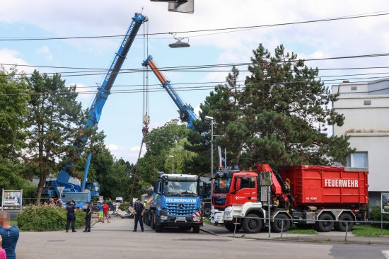 "Passanten meldeten am 16. Juli 2025 gegen 09:15 Uhr, dass es im Bereich der Kreuzung Gabesstraße mit Auwiesenstraße zu einem Verkehrsunfall mit einem LKW gekommen sei. Der LKW riss laut Zeugen Teile der Fußgeherüberführung aus der Verankerung, und diese stürzten auf die Fahrerkabine. Dadurch wurden der 22-jährige Lenker und sein 18-jähriger Beifahrer, beide aus dem Bezirk Rohrbach, schwer verletzt und in der Fahrerkabine eingeklemmt. Für die umfangreichen Verkehrs- und Absicherungsmaßnahmen waren vor Ort 30 Polizisten im Einsatz. Die Auwiesenstraße war zwischen Dauphinestraße und Schörgenhubstraße, die Gabesstraße ab Kreuzung mit der Auwiesenstraße bis Hallestraße gesperrt. Zusätzlich wurde ab 10:00 Uhr der Straßenbahnverkehr in der Auwiesenstraße eingestellt, um den eingesetzten Schwerlastgeräten der Feuerwehr das ungehinderte Arbeiten zu ermöglichen. Die Rettungsmaßnahmen der Feuerwehr dauerten aufgrund der instabilen Statik und der akuten Gefährdung der Einsatzkräfte bis 12:05 Uhr an. Nach der Befreiung der beiden Schwerverletzten aus dem LKW und der notärztlichen Erstversorgung vor Ort wurden sie in das Kepler Universitätsklinikum gebracht. Die Feuerwehr war mit vier Kranfahrzeugen im Einsatz, die Rettung mit 30 Kräften."