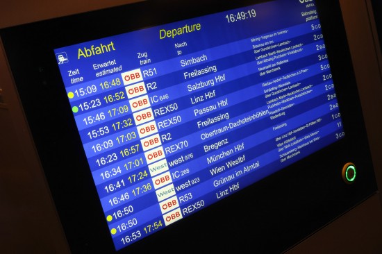 "Wegen technischen Störung am Bahnnetz war bis 16:12 Uhr zwischen St.Pölten Hauptbahnhof und Passau Hauptbahnhof beziehungsweise Linz/Donau Hauptbahnhof und Summerau und zwischen Linz Hauptbahnhof und Selzthal derzeit keine Fahrten möglich. Die Züge warteten die Dauer der Sperre ab. Es kommt weiterhin österreichweit zu Verspätungen."