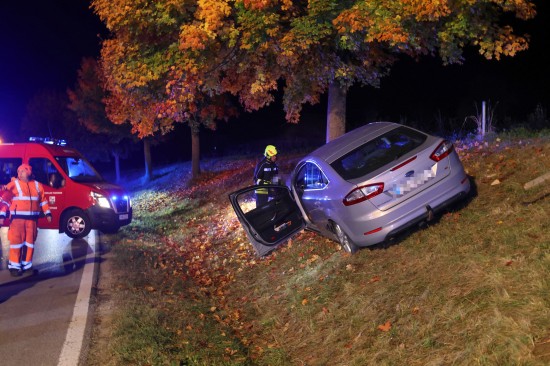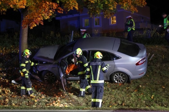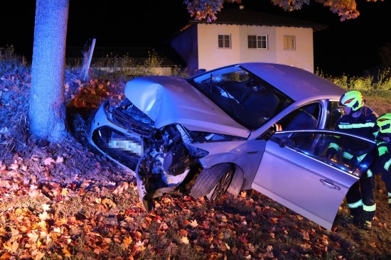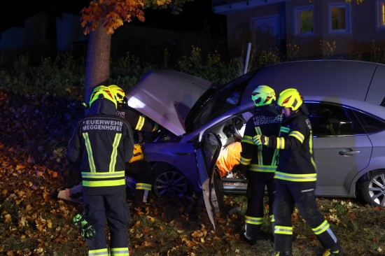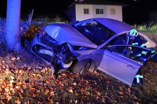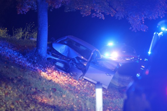 Der Unfall passierte Sonntagabend auf der B135 Gallspacher Straße, Roitham, im Gemeindegebiet von Meggenhofen. Ein Autolenker verlor aus noch unbekannter Ursache die Kontrolle über sein Fahrzeug - ersten Angaben nach könnten gesundheitliche Probleme der Auslöser für den Unfall gewesen sein - und krachte dann frontal gegen einen Baum. Für die Person kam trotz der sofort eingeleiteten Rettungsversuche leider jede Hilfe zu spät. Der Notarzt konnte letztlich nur mehr den Tod feststellen. Eine weitere Person wurde leicht verletzt und musste nach der Erstversorgung ins Krankenhaus gebracht werden. Die Feuerwehr richtete eine örtliche Umleitung ein. Nach der polizeilichen Unfallaufnahme wurde mit den Aufräumarbeiten begonnen. Das Abschleppunternehmen holte den verunfallten PKW ab.