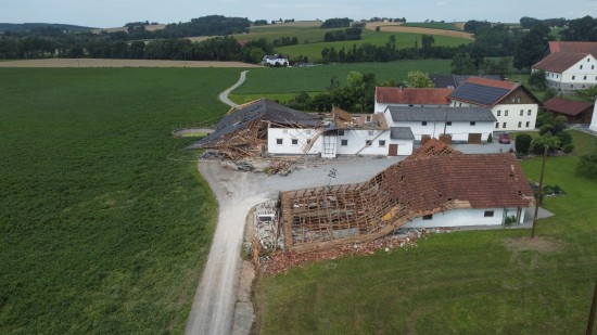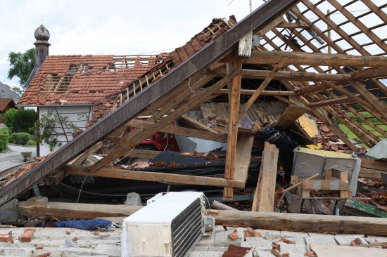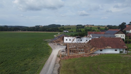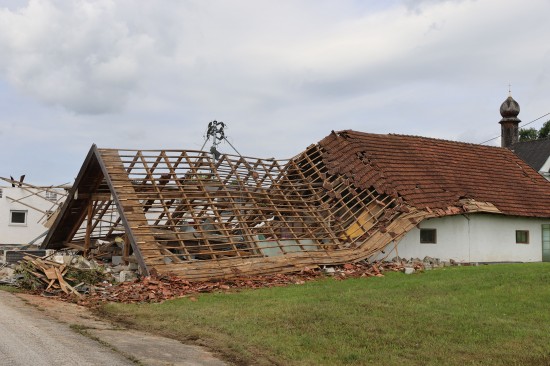 Ein kurzes Gewitter mit einer Windhose, die sich einen schmalen Streifen durch das Gemeindegebiet gesucht hatte, hat am Dienstagnachmittag in Taufkirchen an der Pram großen Schaden angerichtet. Rund 30 Gebäude wurden beschädigt, es kam auch zu einem Teileinsturz eines Bauernhofes in der Ortschaft Wagholming. Die Einsatzkräfte mehrerer Feuerwehren standen am Dienstagnachmittag im Einsatz, dass es lokal zu schweren Schäden gekommen ist, sickerte erst am Abend durch. Die Aufräumarbeiten dauerten bis in die Nachtstunden hinein und wurden auch am Mittwoch fortgesetzt.