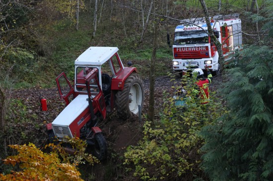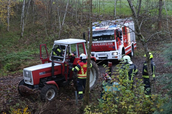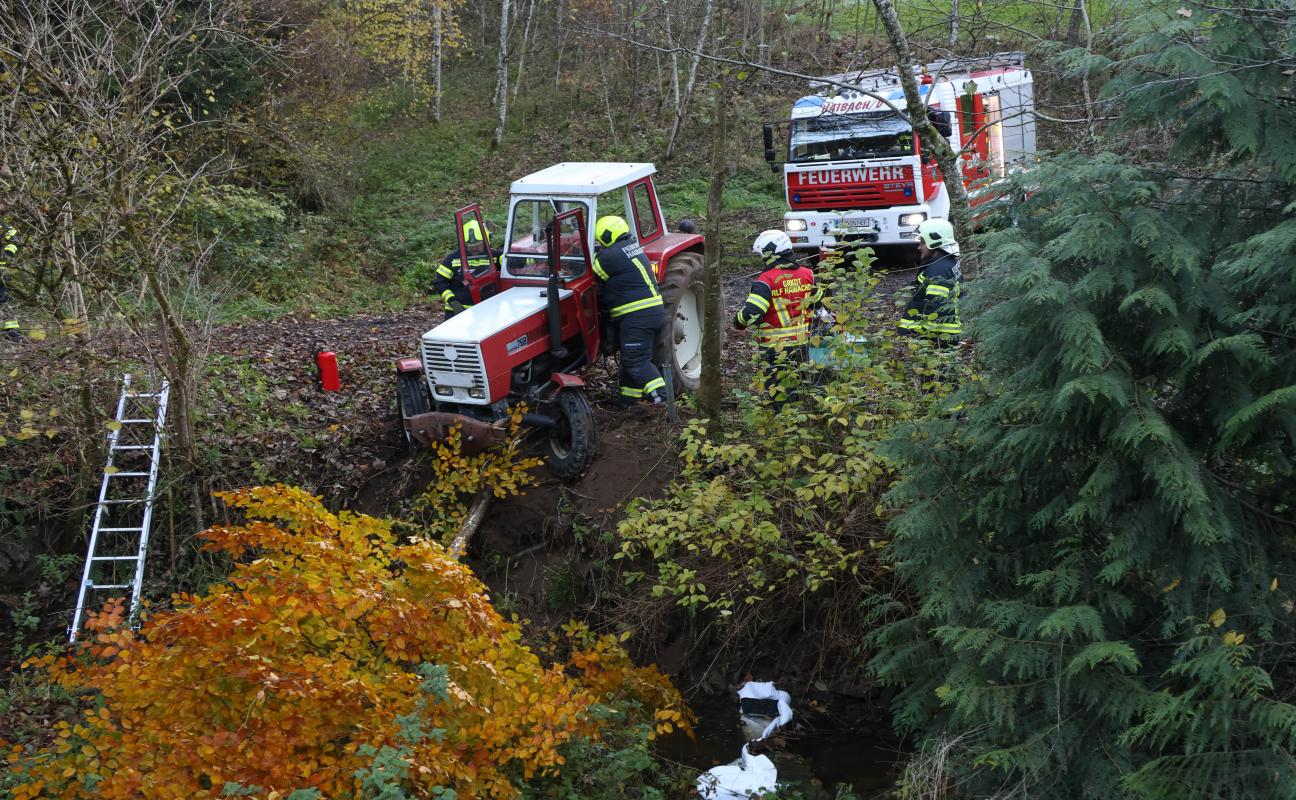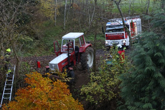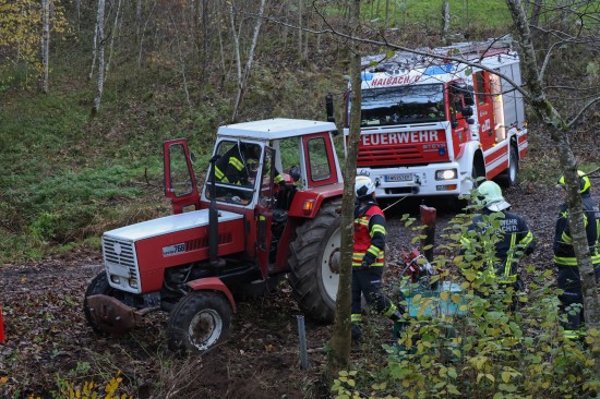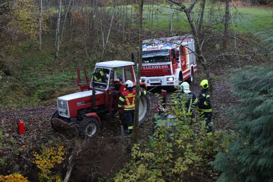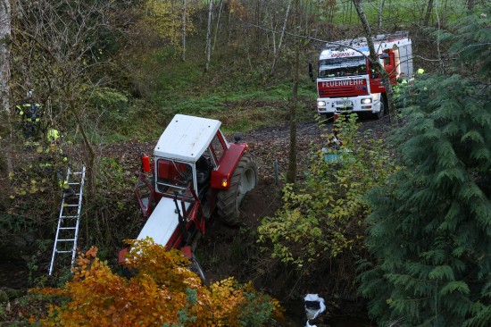 Traktor bei St. Agatha in Bachbett des Freyentalerbachs gestürzt - Traktorlenker lag verletzt am Weg
