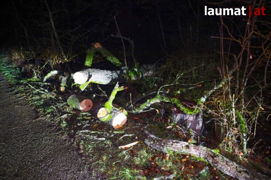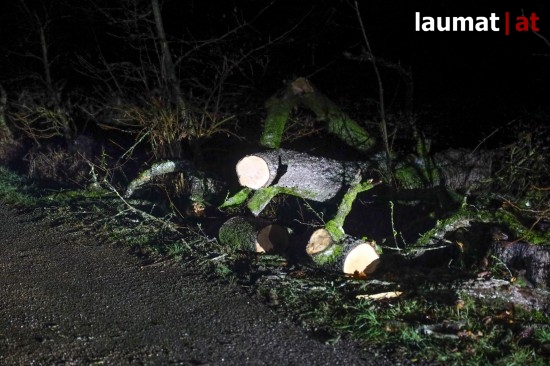 Ein umgestürzter Baum hat am späten Samstagabend in Pichl bei Wels (Bezirk Wels-Land) eine Straße blockiert. Die Feuerwehr schnitt die Straße wieder frei.