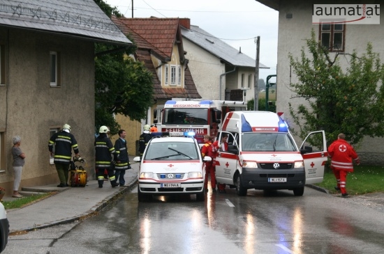 Weißkirchen an der Traun. Einen Schwerverletzten forderte ein Verkehrsunfall an einer Straßenengstelle im Ortszentrum von Weißkirchen an der Traun. Zwei Fahrzeuge stießen im vorderen Fahrzeugbereich zusammen und ein Fahrzeug kam an einem Baum vor einem Haus zum Stehen. Der Lenker dieses PKW wurde im Fahrzeug eingeklemmt und musste von der Feuerwehr befreit werden.
