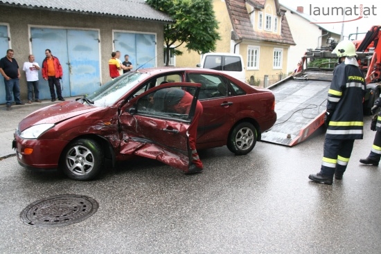 Einen Schwerverletzten forderte ein Verkehrsunfall an einer Straßenengstelle im Ortszentrum von Weißkirchen an der Traun. Zwei Fahrzeuge stießen zusammen.