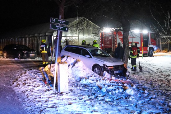 Die Einsatzkräfte von vier umliegenden Feuerwehren wurden Freitagabend zur Personenrettung nach einem Verkehrsunfall alarmiert. Eine Person ist offensichtlich - und aus noch nicht bekanntem Grund - von der Straße abgekommen, entlang einer Gärtnerei dann durch die Wiese gefahren, hat ein Schild gerammt und krachte dann nach dem Queren der Einfahrt letztlich gegen einen Baum. Die Person war zum Glück nicht im Fahrzeug eingeklemmt oder eingeschlossen, so konnte seitens der Feuerwehr schnell wieder Entwarnung gegeben werden. Die Einsatzkräfte der örtlich zuständigen Feuerwehr führten die Aufräumarbeiten durch und warteten das Eintreffen des Abschleppdienstes ab. Die unterstützenden Kräfte konnten rasch wieder einrücken. Die Person, die den Unfall verursacht hat, wurde vom Rettungsdienst versorgt.