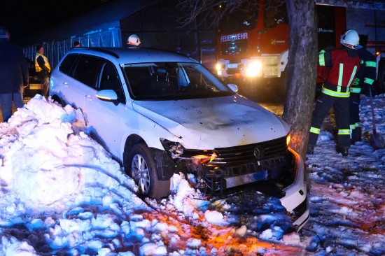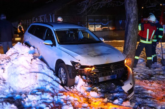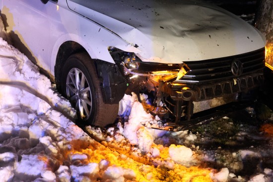 In Waldneukirchen (Bezirk Steyr-Land) ist Freitagabend eine Person mit einem Fahrzeug aus noch unbekannter Ursache von der Straße abgekommen und letztlich gegen einen Baum gekracht.