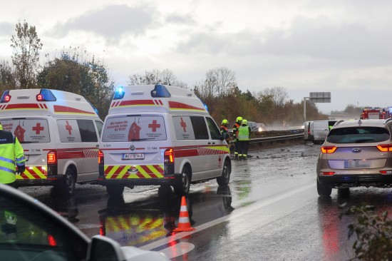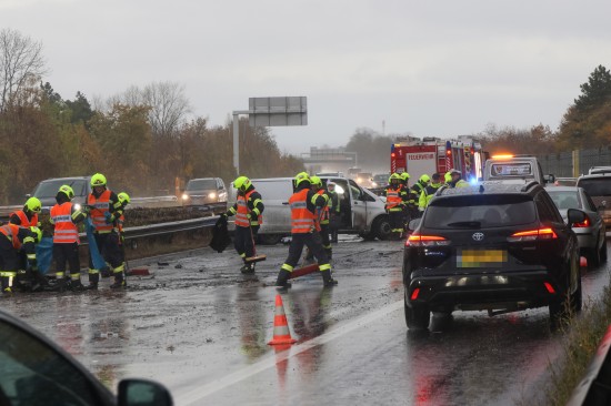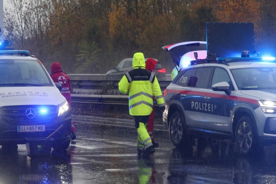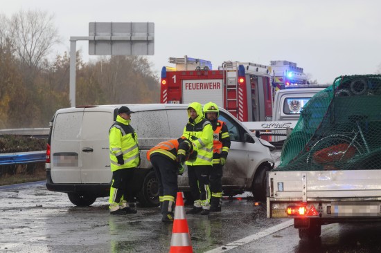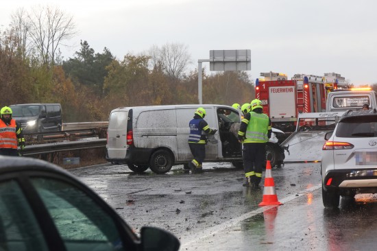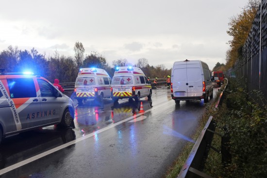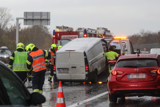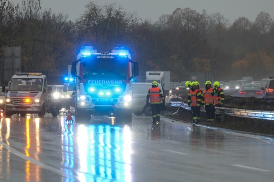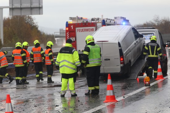 Unfall: Kleintransporter auf Welser Autobahn bei Weißkirchen an der Traun gegen Leitschiene gekracht