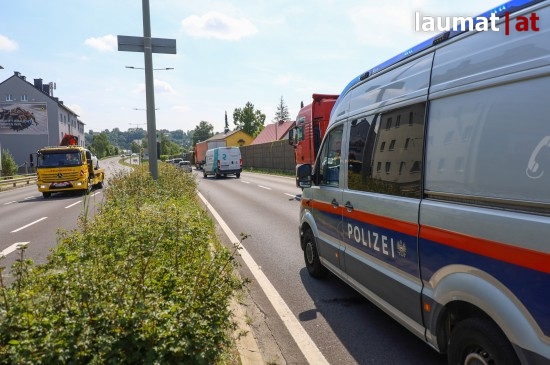 Eine Streifkollision zwischen einem LKW und einem PKW hat sich Freitagvormittag auf der B138 Pyhrnpass Straße in Wels-Pernau ereignet.