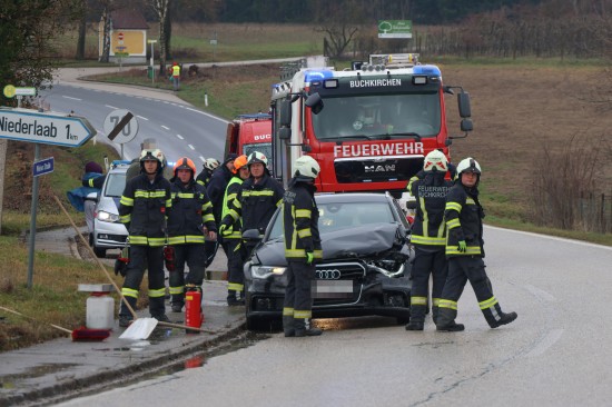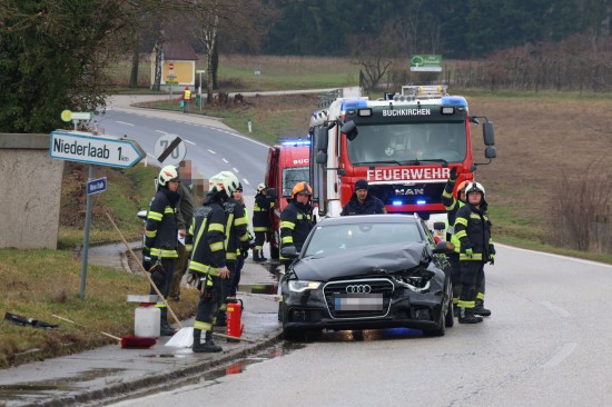 Der Unfall passierte am Samstag gegen Mittag auf der L531 Schartener Straße, Welser Straße bei der Kreuzung mit der Niederlaaberstraße im Gemeindegebiet von Buchkirchen. Offenbar kam es bei einem Abbiegemanöver zu einem Auffahrunfall, bei dem eine Person verletzt wurde. Die Feuerwehr wurde zu Aufräumarbeiten alarmiert. Die Einsatzkräfte sicherten die Unfallstelle ab und betreuten bis zum Eintreffen der Rettung die verletzte Person. In weiterer Folge wurde die Fahrbahn gereinigt.