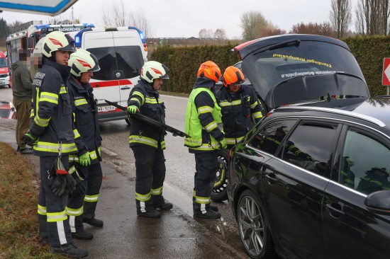Eine verletzte Person forderte Samstagmittag ein Auffahrunfall bei einem Abbiegemanöver auf der L531 Schartener Straße bei Buchkirchen (Bezirk Wels-Land).