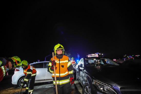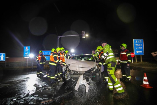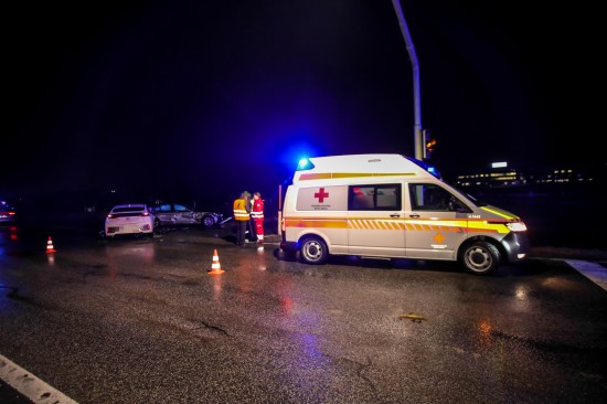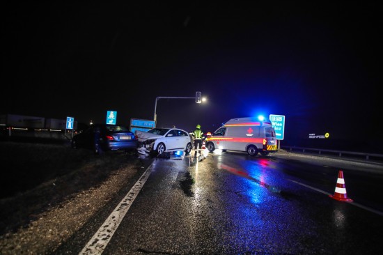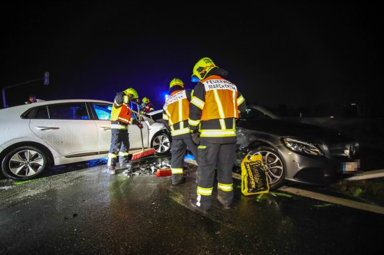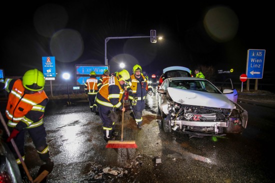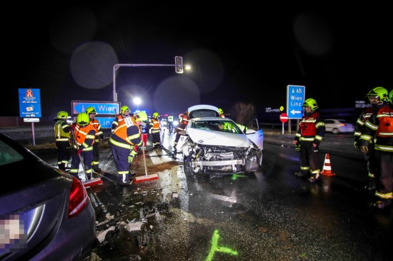 Der Unfall passierte direkt im Kreuzungsbereich der B1 Wiener Straße zur Autobahnauffahrt auf die A25 Welser Autobahn bei Wels-Ost beziehungsweise Marchtrenk-West, im Gemeindegebiet von Marchtrenk. Aus noch ungeklärtem Grund kollidierten dort zwei PKW. Beide Fahrzeuge wurden schwer beschädigt. Feuerwehr, Rettung, Polizei und Abschleppunternehmen standen im Einsatz.