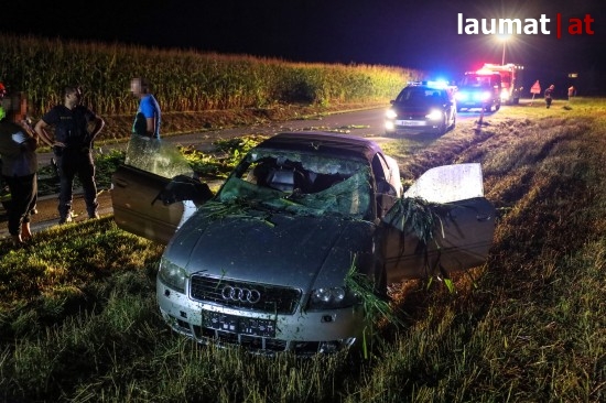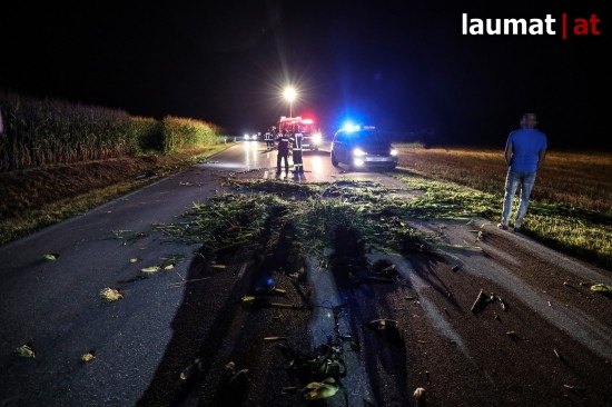 "Ein 18-jähriger kroatischer Probeführerscheinbesitzer aus dem Bezirk Wels-Land lenkte den Wagen seines Vaters am 19. August 2021 gegen 22:20 Uhr auf der Pettenbacher Straße Richtung Vorchdorf. Im Fahrzeug befanden sich noch zwei Freunde, 17 und 18 Jahre alt und ebenfalls aus dem Bezirk Wels-Land. Kurz vor einer leichten Linkskurve im Gemeindegebiet Bad Wimsbach-Neydharting überholte der 18-Jährige einen vorausfahrenden Freund. Während des Überholvorganges bemerkte er plötzlich ein entgegenkommendes Fahrzeug. Er lenkte seinen Wagen abrupt auf den rechten Fahrstreifen zurück und kam ins Schleudern. Der PKW schlitterte nach rechts über eine leichte Böschung in ein angrenzendes Maisfeld. Dieses durchpflügte er etwa 100 Meter weit mit hoher Geschwindigkeit. Anschließend überquerte er die Straße und kam links von der Fahrbahn in einem Feld zum Stehen. Der Lenker und ein Freund wurden dabei leicht an der Hand verletzt. Im Maisfeld entstand erheblicher Flurschaden, der zuständige Landwirt wurde verständigt", berichtet die Polizei.