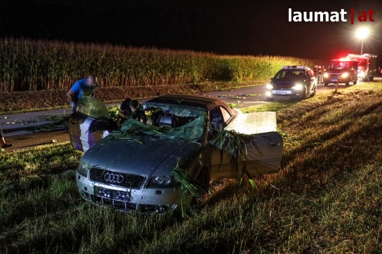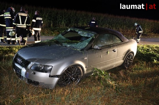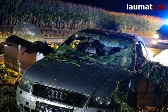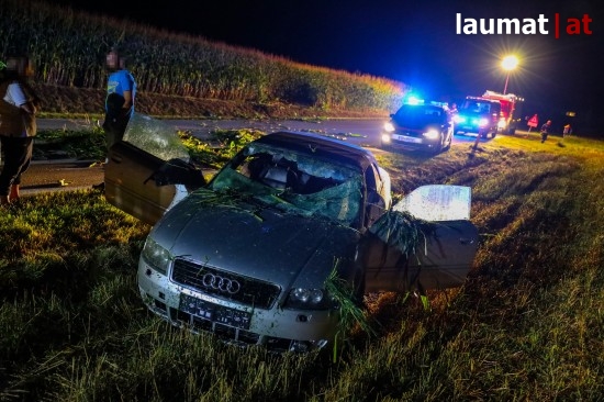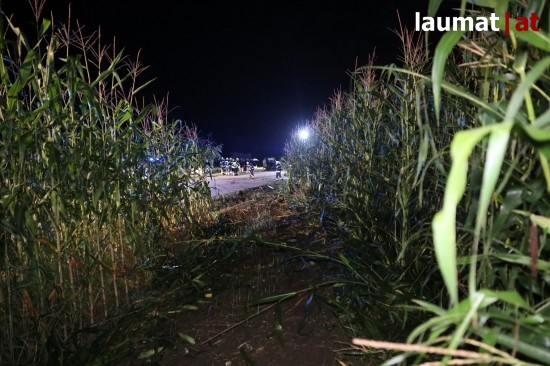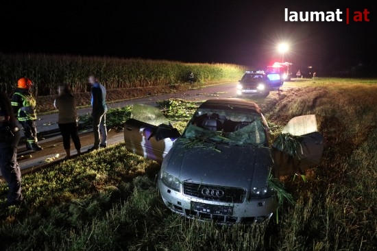 Ein Auto hat am späten Donnerstagabend in Bad Wimsbach-Neydharting (Bezirk Wels-Land) bei einem Unfall eine Schneise durch ein Maisfeld gezogen. Der PKW wurde schwer beschädigt.