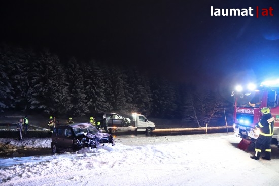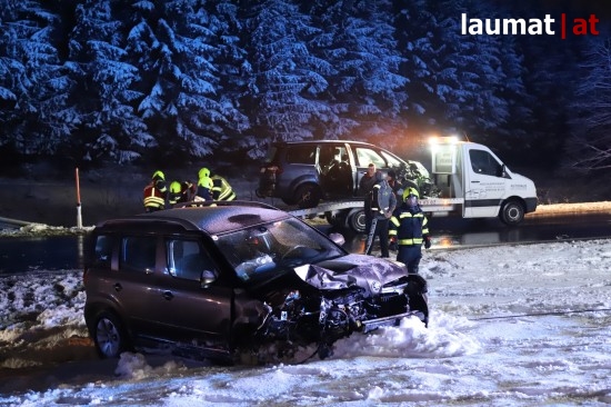 Vorderweißenbach. Samstagnachmittag wurden die Einsatzkräfte zu einem Verkehrsunfall nach Vorderweißenbach (Bezirk Urfahr-Umgebung) alarmiert. Auf der spiegelglatten Fahrbahn kam es zu einer frontalen Kollision zwischen zwei PKW.