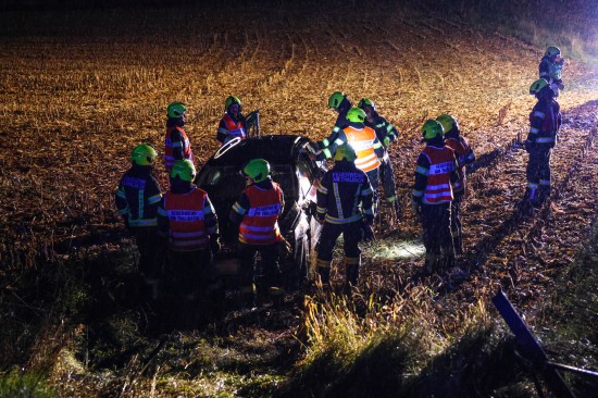 In Thalheim bei Wels (Bezirk Wels-Land) ist Samstagabend offensichtlich ein Auto von der B138 Pyhrnpass Straße abgekommen und im Feld zum Stillstand gekommen.