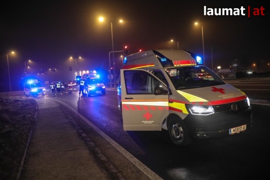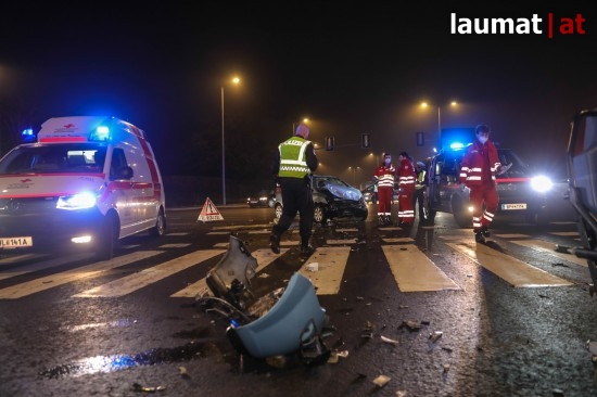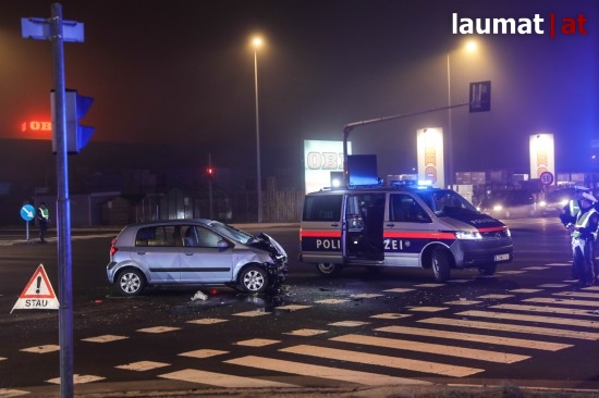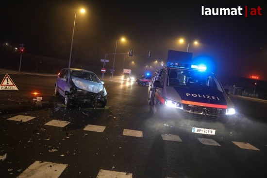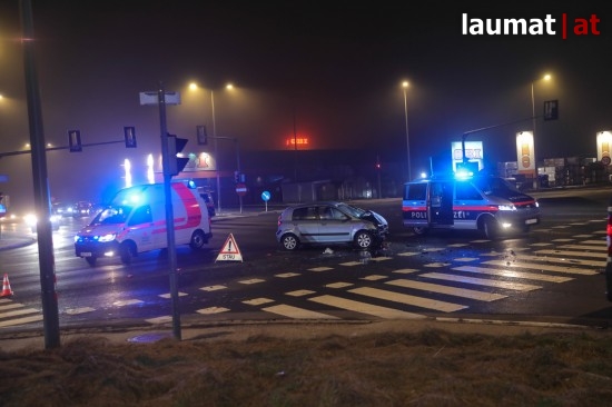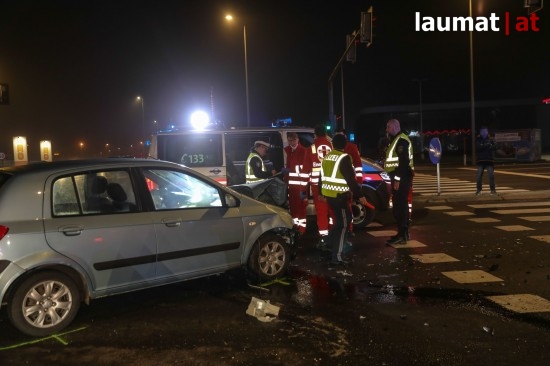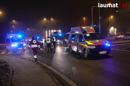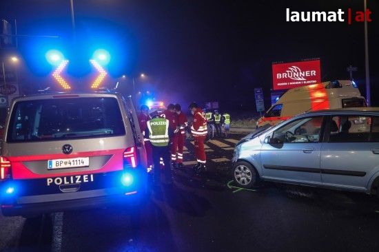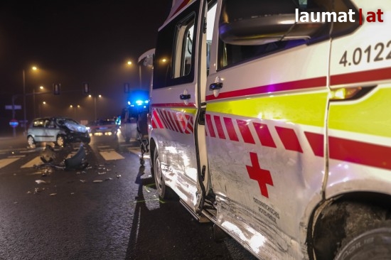Verkehrsunfall zwischen PKW und Rettungsauto in Wels-Puchberg fordert zwei Verletzte