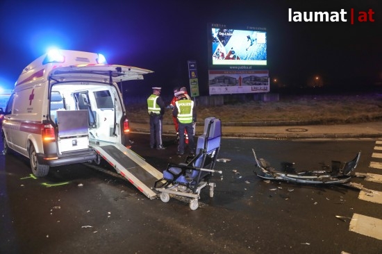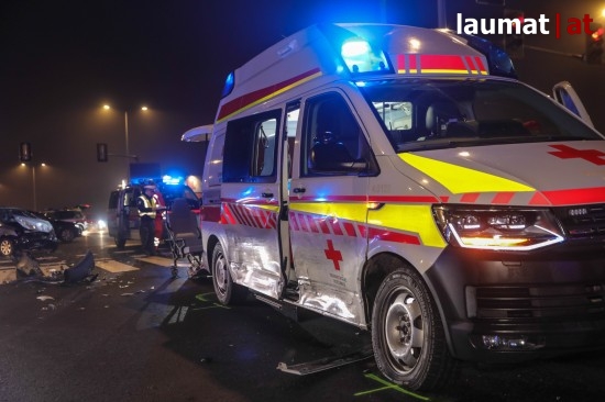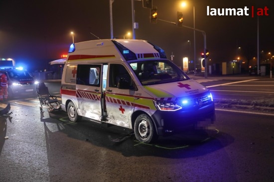 Sonntagabend ereignete sich in Wels-Puchberg ein Verkehrsunfall zwischen einem Rettungsauto und einem PKW. Das Rettungsauto war mit einem Patient auf dem Weg in ein Krankenhaus.
