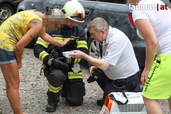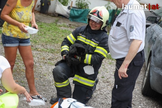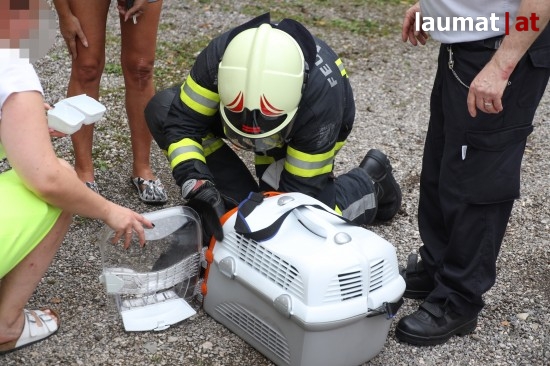 Anwohner hörten das laute Miauen der Katze und entdeckten sie schließlich in einem gekippten Fenster im ersten Stock eingeklemmt. Das Tier konnte von den Einsatzkräften rasch befreit werden und wurde anschließend rasch zu einem Tierarzt gebracht, da sich die Katze zwar sehr ruhig verhalten hatte, aber augenscheinlich verletzt ist.
